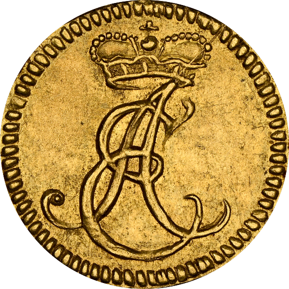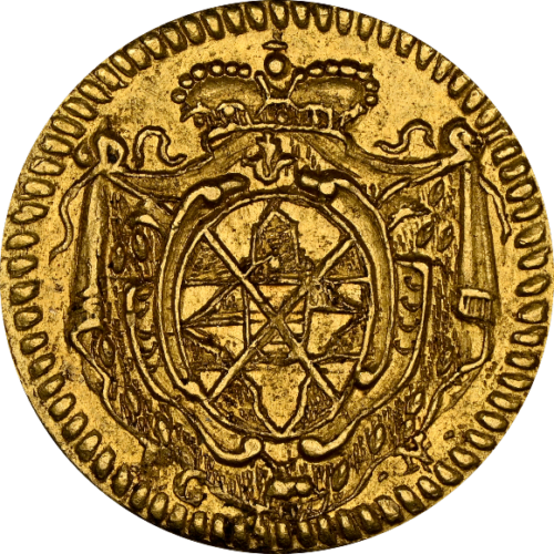 この金貨の表面は、AEのモノグラムが王冠を被る構図、侯国への格上げ時(1674年)の
