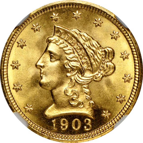 当2.5ドル金貨はMS68という、100年以上前に発行されたコインがグレードの