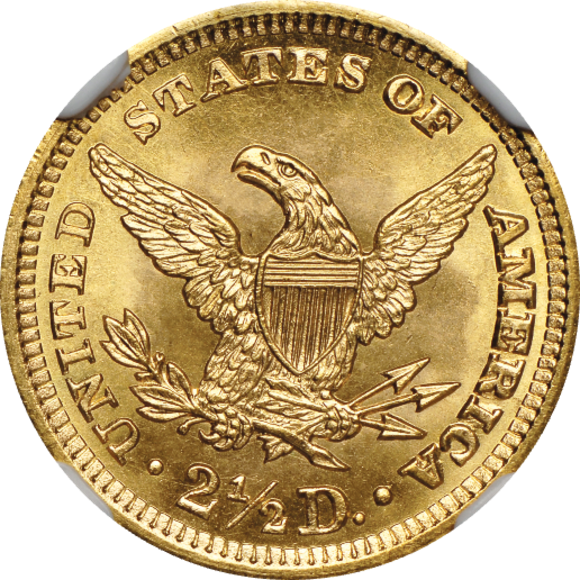 兼ね備えている当2.5ドル金貨は、大衆コインを2回ひねりで振り切っている突き抜け感の