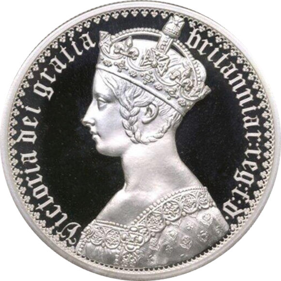 1847年(及び1853年)に、ウィリアム・ワイオンの手により、1クラウン銀貨の表面(※1)に、