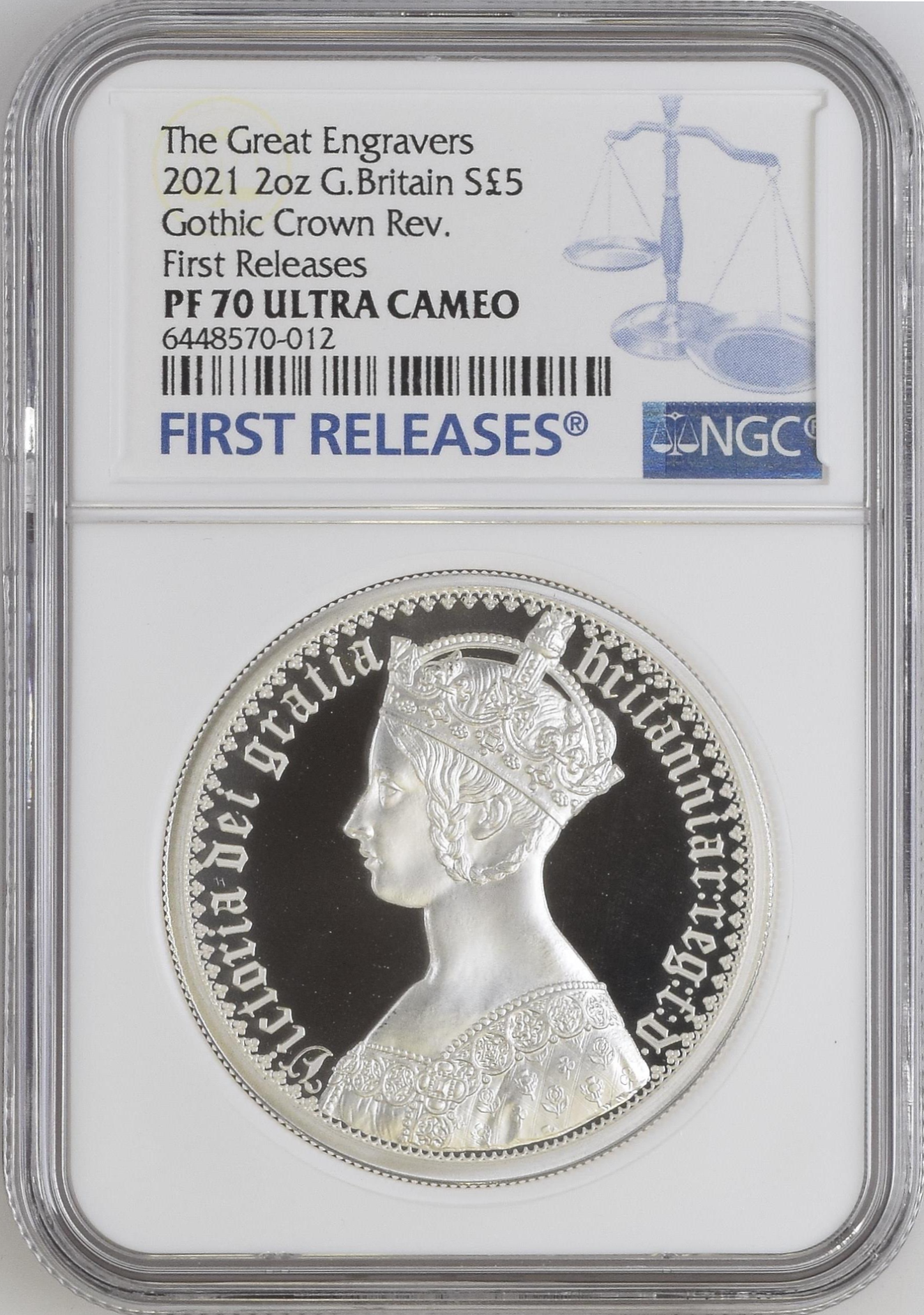 トップグレード ゴシッククラウンポートレート 2オンス 5ポンド グレートエングレーバーシリーズ ヴィクトリア女王(ヤングヴィクトリア) エリザベス2世(在位:1952年〜2022年) ウィリアム・ワイオン ロイヤルミント シルバー(.999) 初回リリース品鑑定 オリジナル木製ボックス オリジナル化粧箱 真正証明書 プルーフ ウルトラカメオ 2021年 PF70UC NGC